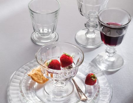 Klasyczne francuskie kieliszki wykonane z grubego prasowanego szkła. Dzięki wyrafinowanym prążkom pięknie załamują światło, a ich przyjemny ciężar sprawia, że doskonale leżą w dłoni. Idealne nie tylko do serwowania czerwonego, białego czy różowego wina, lecz także wody, soków czy innych napojów.